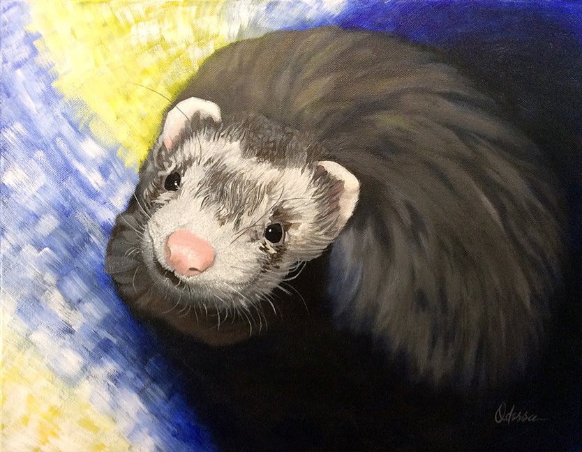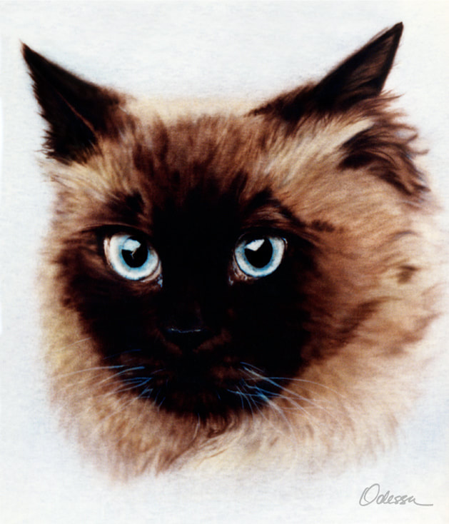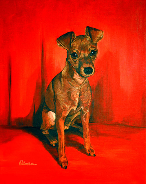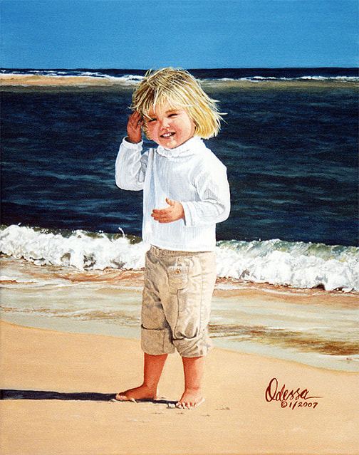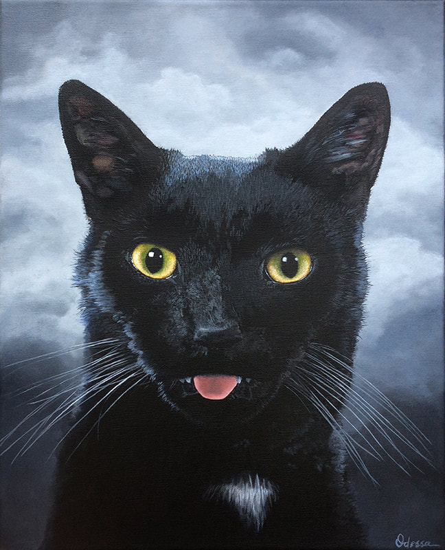 A high quality photograph showing the subject in the position desired is a requirement for a highly detailed painting. For commissions of a specific photograph, or for memorial portrait paintings, Odessa will review the photo for clarity during the quote stage of a commission. Odessa is available for photoshoots if a high quality photograph is not available. Other considerations include: Canvas or paper size, budget and expected timeframe of delivery.