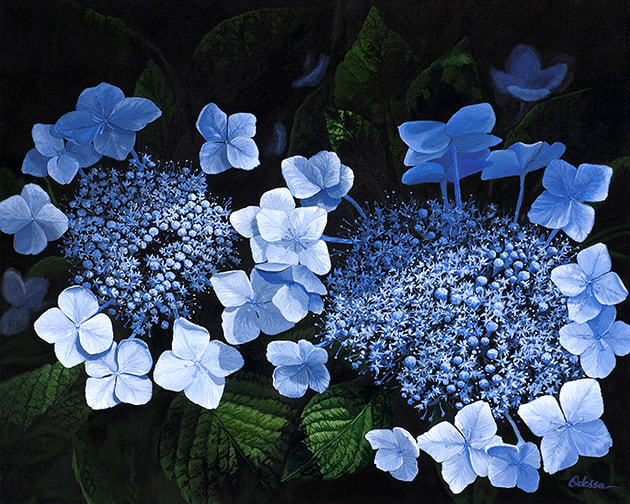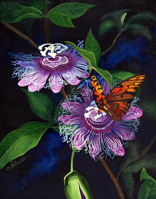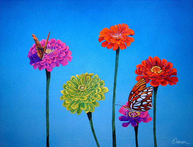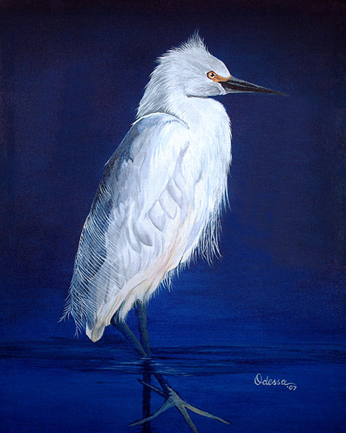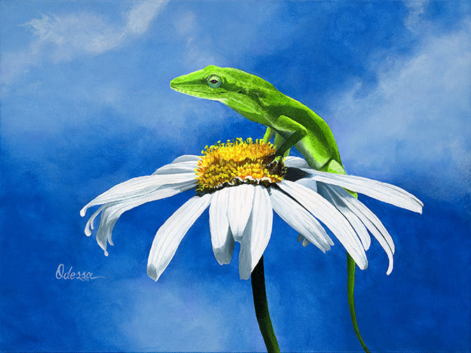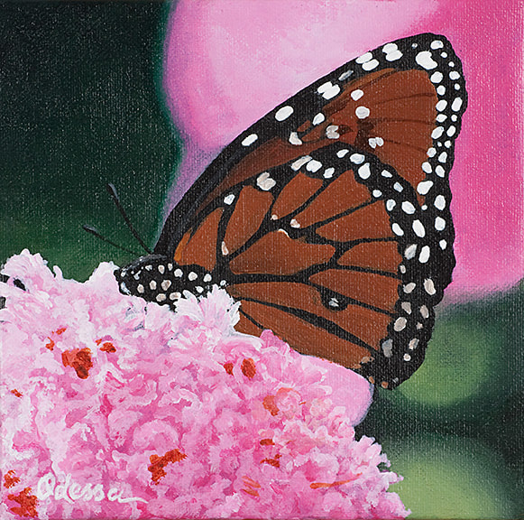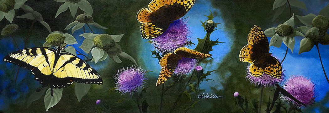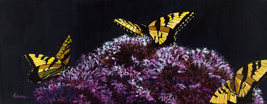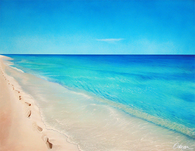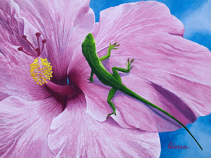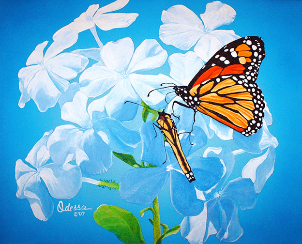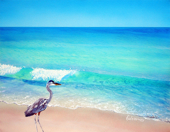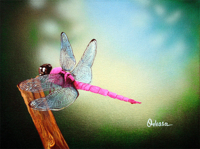 Canvas sizes range from 11” x 14” and up. Large canvas sizes are available (Odessa enjoys painting large canvases), however, the larger the canvas, the longer painting time is required. Odessa usually uses standard canvas sizes for ease of framing, however, there are times that only a custom sized canvas will do. In the instances when custom canvas sizes are needed, Odessa will assemble the canvas from scratch. The best course of action is to determine where you would like to hang the finished painting and consider what size would fit that space best.