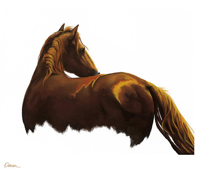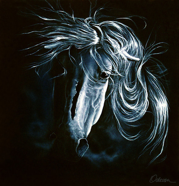 Paper sizes range from 9” x 12” up to 30” x 40”. Large paper sizes are available, however, the larger the drawing, the more creation time required. Odessa usually uses standard paper sizes for ease of framing, however, there are times that only a custom sized paper will do. In the instances when custom canvas sizes are needed. As with canvases, the best course of action is to determine where you would like to hang the finished painting and consider what size would fit that space best.