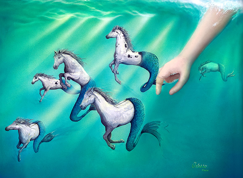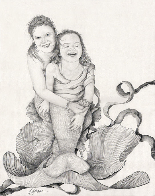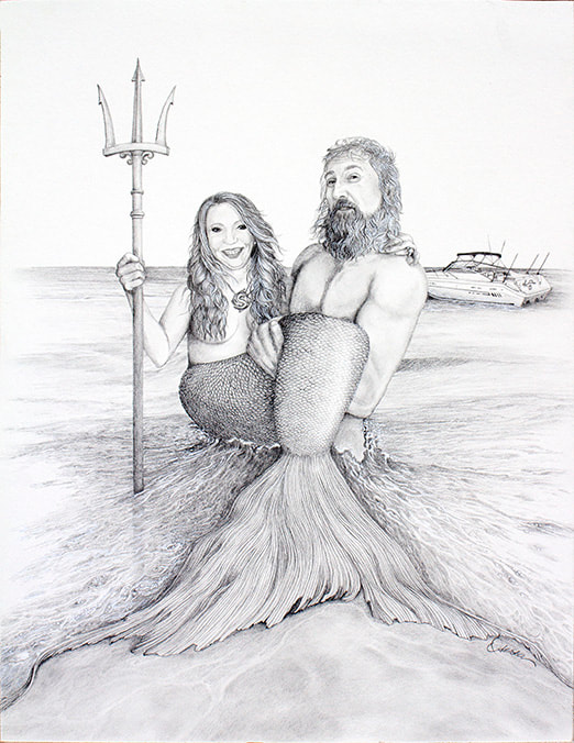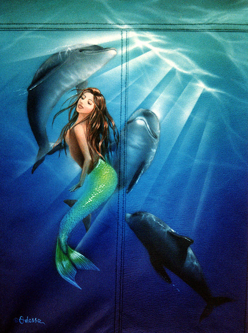 Odessa usually paints wildlife, pets and nature, but is also available for human portraits, and even has a portfolio of portraits who have been made into mermaids. She calls these specialized mermaid portraits “Mermaidifications”. You can see an example of a Mermaidification here. The example shows the original photograph with work in progress shots through the final piece.