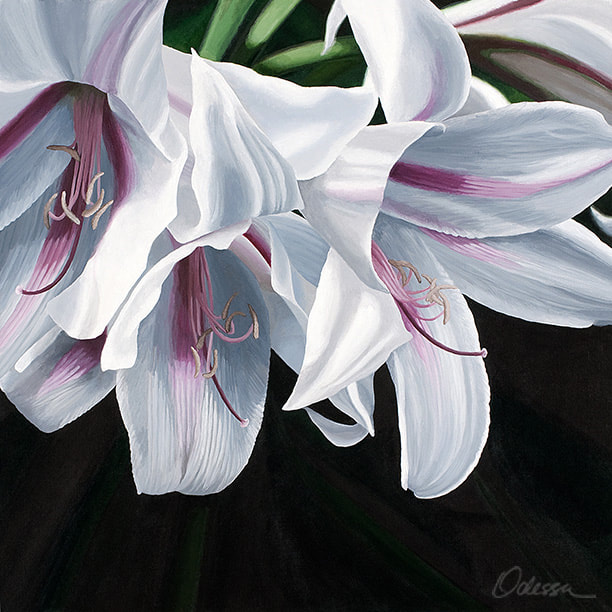 Odessa’s highly detailed, realistic style requires more time to accomplish in general, but the timeframe is dependent on the size of the canvas or paper, and the choice of medium. Generally speaking, acrylic and oil paintings on canvas take anywhere from 4 months to a year to complete depending on canvas size and number of subjects. Graphite, soft pastel and colored pencil pieces take from 2 to 6 months to complete. Each painting is as individual as their subjects, and Odessa will give you a realistic idea of when to expect a completed commission. In addition to actual creation time, the preliminary planning stages with clients and shipping time adds to your painting’s final arrival. Because Odessa’s schedule is usually quite full, please plan ahead for gift giving. Christmas is usually much busier, so if you would like a painting to give as a Christmas gift, please contact her early.